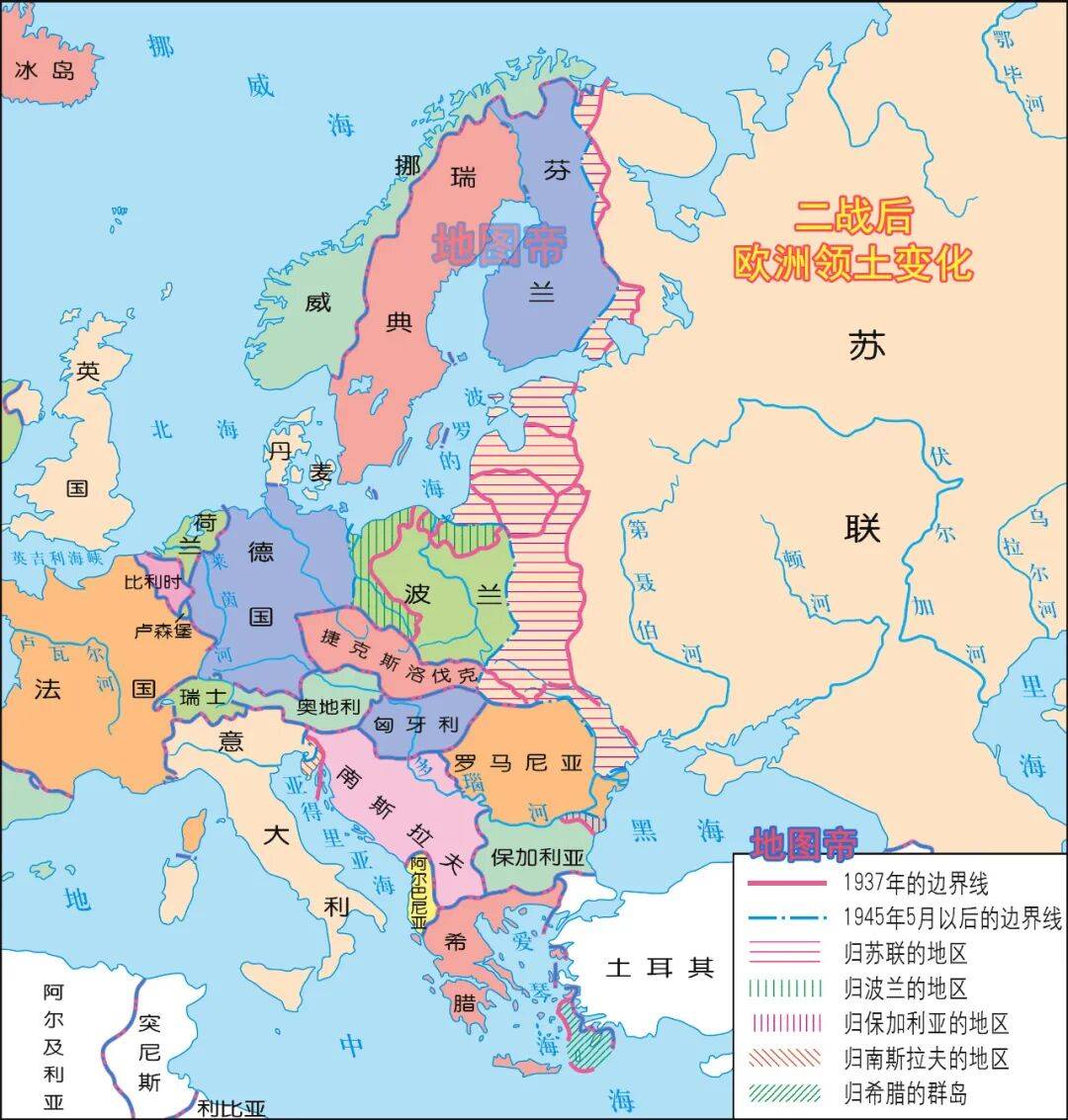 二战后就是接近半个世纪的冷战,冷战结束,上世纪90年代,苏联解体和东欧剧变,欧洲国家数量再度猛增。