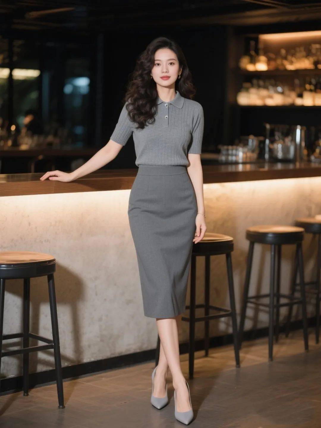 灰色 POLO 衫自带 “低调吸睛” 属性,搭配灰色半裙,女性多面魅力轻松展现!通过巧妙搭配实现显瘦效果,踩一双灰色高跟鞋,独特自信气场藏都藏不住,日常穿休闲时髦,聚会穿又能美出新高度,穿出女性独有的美~