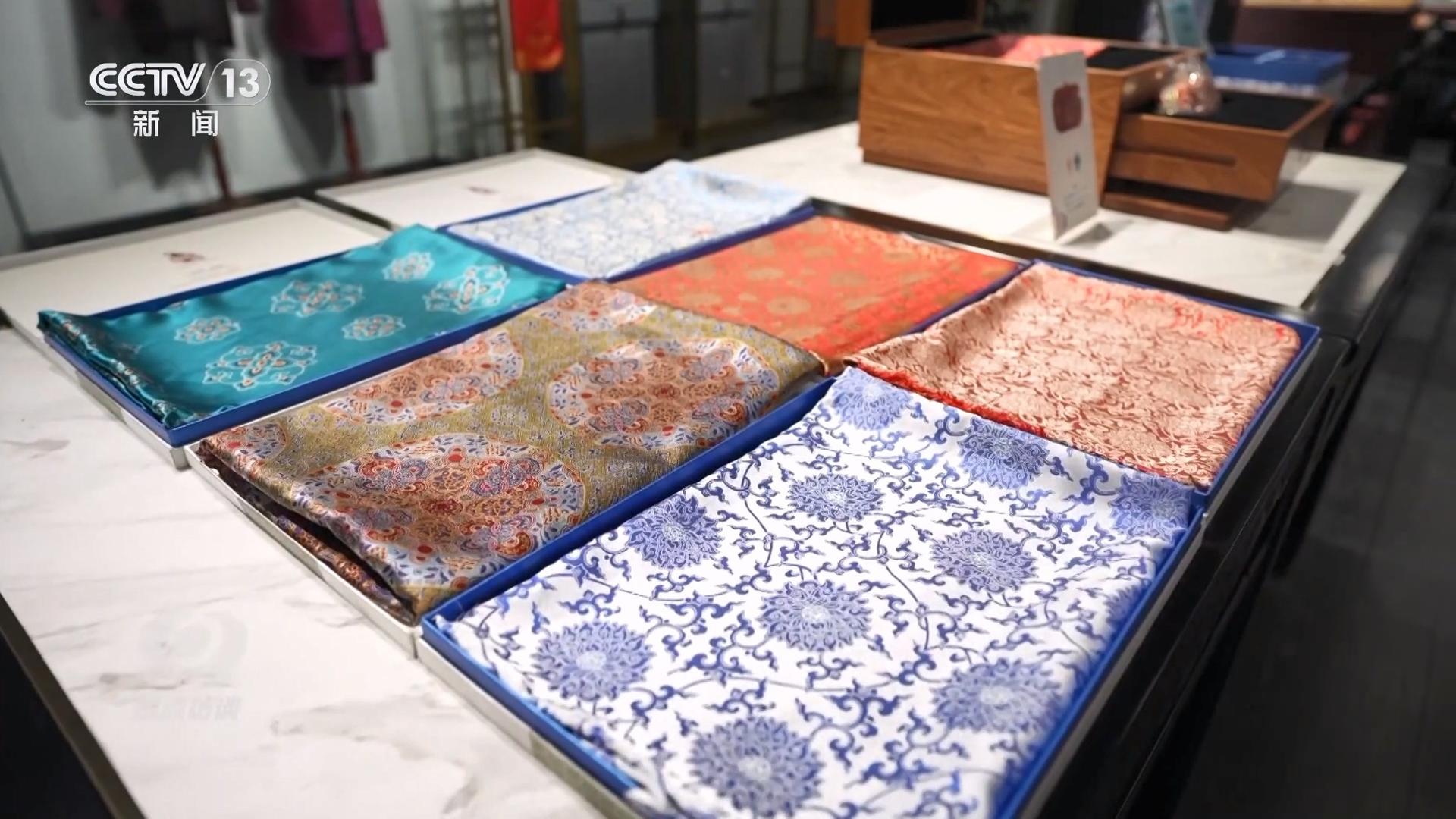 除了传统的纺织业从业人员,宋锦真正出圈,还少不了更多年轻人的参与。在苏州街头,记者发现了一家很有特色的新中式服装店。里面不少服装选用的都是宋锦、罗料等传统面料来手工制作。