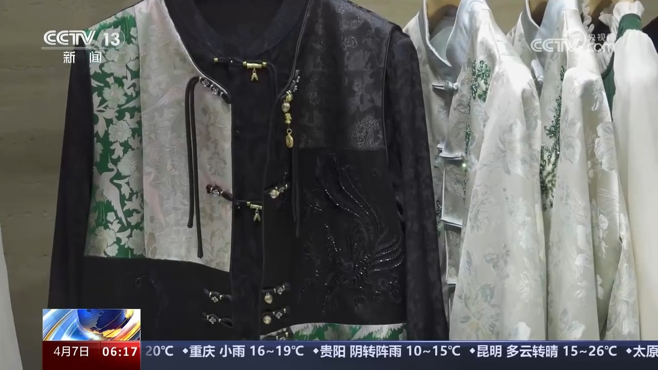 缎子坎肩叠穿帽衫,宋锦外套搭配牛仔裤,刺绣衬衫配马面裙,记者走访各地发现,新中式成为春夏服饰穿搭的流行密码。