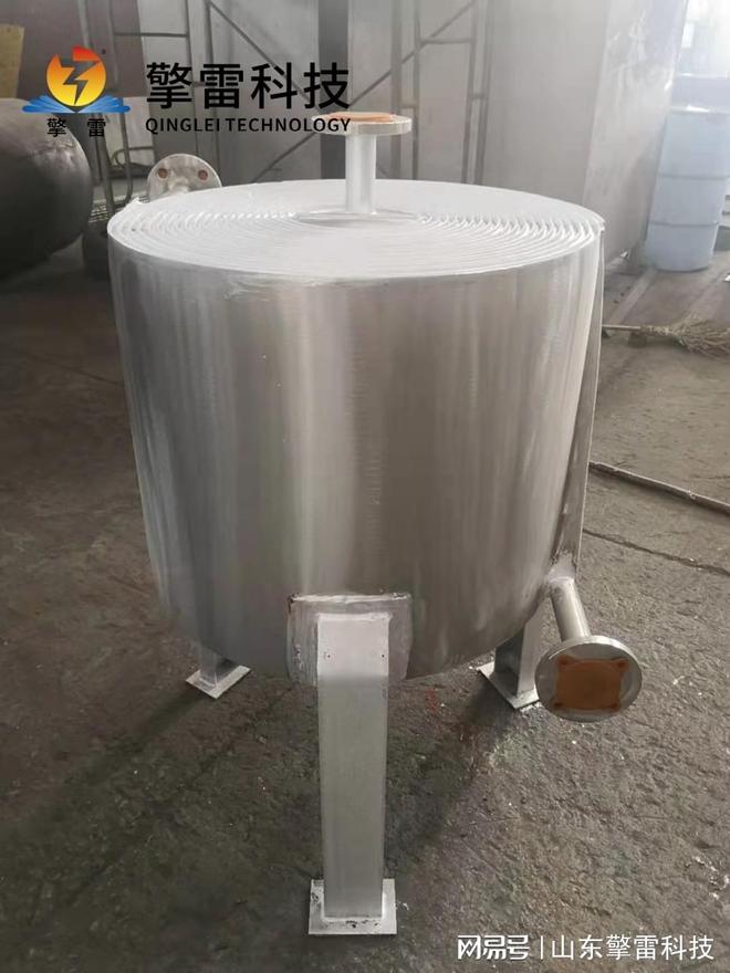 (二)制药行业制药工艺对温度的控制要求极为严格,单盘管热交换器在制药领域有着广泛的应用。在药物合成过程中,它可以为反应釜提供加热或冷却介质,确保反应在恒定的温度下进行,提高药物的产量和质量。在药物的提纯和结晶过程中,通过精确控制温度,可以影响药物的溶解度和结晶形态,从而得到高纯度的药物晶体。同时,单盘管热交换器还可以用于制药车间的空调系统,调节车间内的温度和湿度,为药品生产创造良好的环境条件。(三)食品行业在食品加工过程中,温度控制对于保证食品的质量和安全至关重要。单盘管热交换器可用于食品的加热、杀菌、冷却等环节。例如,在牛奶的巴氏杀菌过程中,将牛奶通过单盘管热交换器与热水进行热交换,使牛奶在较短的时间内升温到杀菌温度,然后迅速冷却,既能有效杀灭牛奶中的有害微生物,又能最大程度地保留牛奶的营养成分和风味。在啤酒酿造过程中,单盘管热交换器可以用于麦芽汁的冷却和发酵液的的温度控制,确保啤酒的口感和品质。(四)供暖与空调领域在供暖系统中,单盘管热交换器可以作为散热器使用,将热水中的热量传递给室内空气,提高室内温度。在空调系统中,它常用于制冷剂的蒸发和冷凝过程。例如,在风冷式冷水机组中,单盘管热交换器作为蒸发器,制冷剂在盘管内蒸发吸收周围空气的热量,使空气温度降低,从而实现制冷效果;在冷凝器中,高温高压的制冷剂气体通过盘管与外界空气进行热交换,将热量释放到空气中,使制冷剂气体冷凝成液体。四、单盘管热交换器面临的问题(一)传热效率有限虽然单盘管热交换器具有一定的换热能力,但由于其结构相对简单,流体在盘管内的流动状态和传热方式存在一定的局限性,导致传热效率相对较低。特别是在处理大流量、高粘度流体或需要快速加热或冷却的情况下,传热效率可能无法满足工艺要求。(二)腐蚀问题在一些工业应用中,热交换器所处理的流体可能具有腐蚀性,如含有氯离子、硫化物、酸碱等物质的流体。这些腐蚀性物质会对盘管和容器造成腐蚀,降低设备的使用寿命,甚至导致泄漏事故的发生,影响生产的正常进行。(三)结垢问题流体中的杂质、矿物质等在加热过程中容易在盘管表面沉积,形成水垢或污垢。结垢会降低传热效率,增加流体阻力,导致设备的能耗增加。同时,结垢还可能引发局部过热,损坏盘管,影响设备的安全运行。(四)流体分布不均在单盘管热交换器中,冷流体在容器内围绕盘管流动时,可能会出现流体分布不均的情况。部分区域的冷流体与盘管的接触不充分,导致热量传递不均匀,影响整体的换热效果。