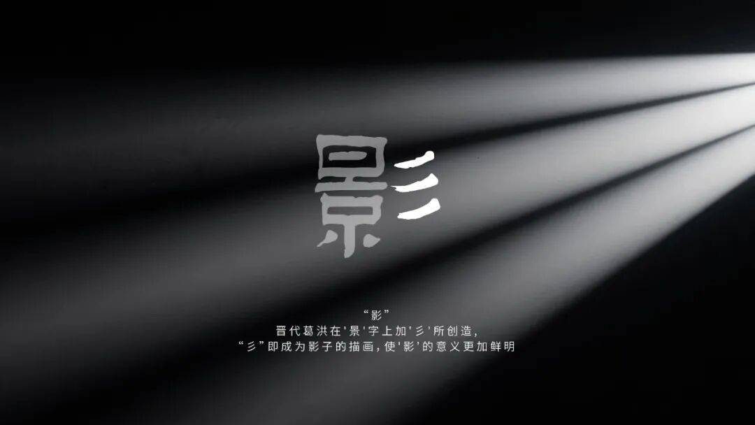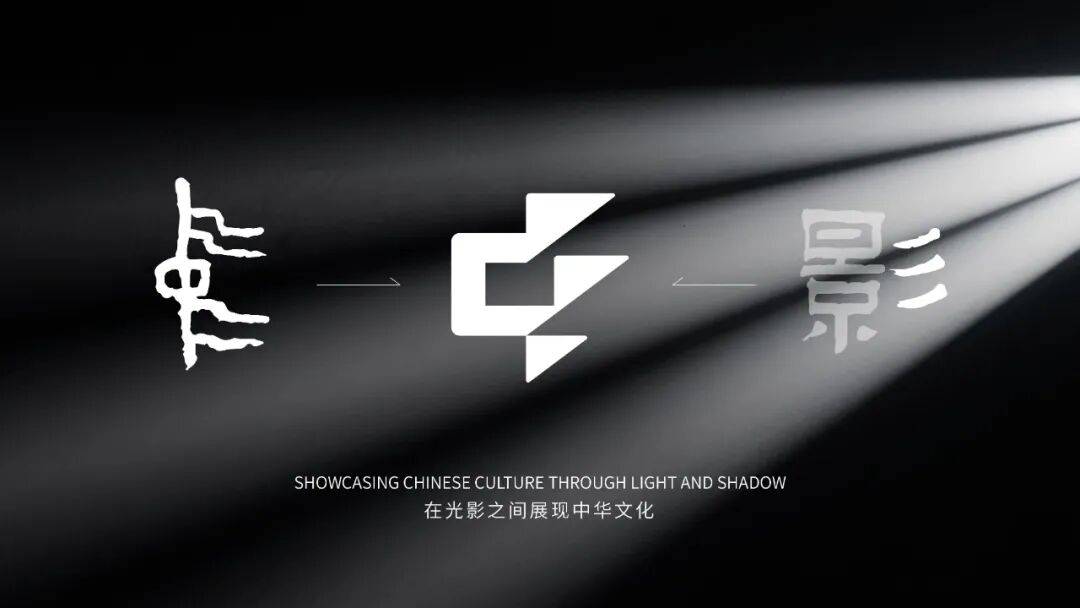 影字的右半边的偏旁部首“彡”本身就有光影之义,紧扣电影行业属性的同时将“彡”的三笔处理为向右上斜切的直角三角形,具有强烈的速度感、飘扬感,表达中影作为中国电影的一面旗帜,引领行业从过去到当下到未来,向着光荣与梦想不断前行。